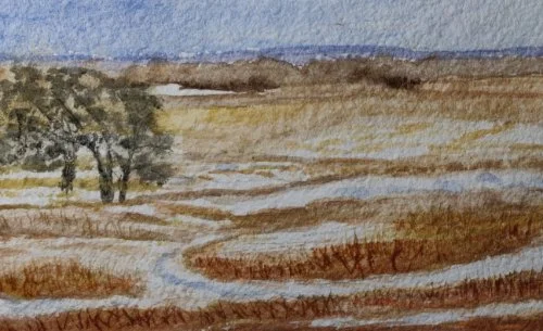 ‘Cary Prairie” depicts a windy March day in a local prairie, just after the winter’s prairie burn.